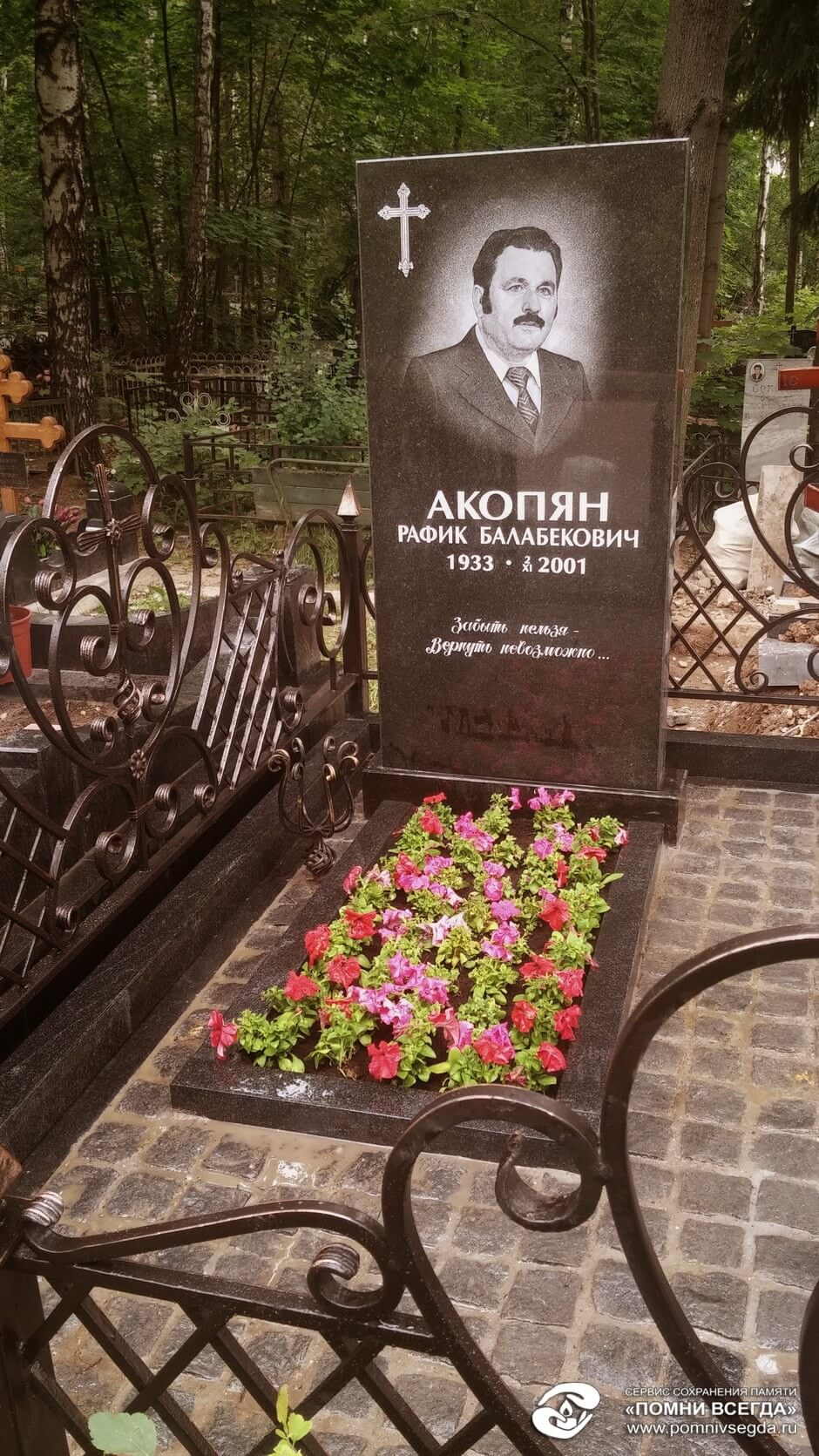 | Виды работ: | Укладка брусчатки на могиле, Посажены цветы в цветник,