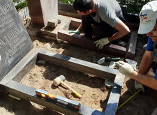 Пока семена всходили, мы восстановили надписи на памятниках, а также протёрли сами надгробья специальной жидкостью, защищающей гранит.