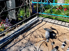 После того, как нужная высота была набрана, мы принялись за установку новых цветников, предварительно застелив землю под ними геотекстилем.