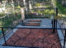 В данном заказе нам предстояло переоформить уже существующее место захоронения. Клиент пожелал облагородить могилу, выложив её территорию брусчаткой, заменив лавочку со столиком и обновив памятники. Обговорив все детали предстоящей работы, мы осмотрели участок. На нижеприведённых фотографиях отображено изначальное состояние места захоронения.