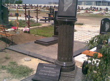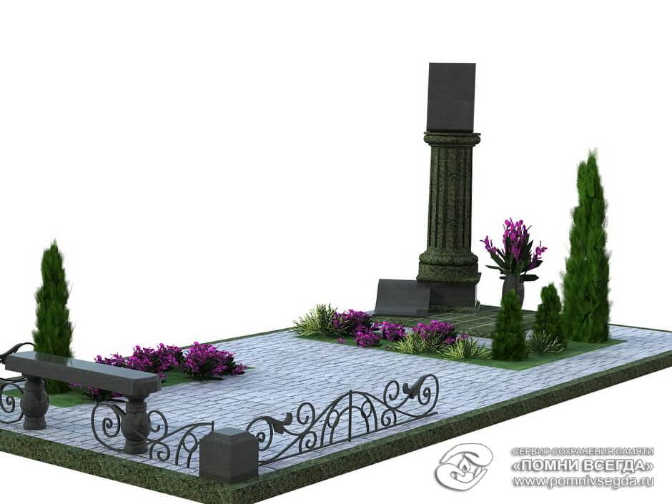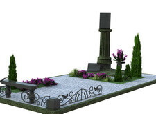 Макет места захоронения с максимальной концентрацией внимания на центральный постамент. Достаточно не обычное решение сделать центром композиции колону. Строгий и скорее даже классический вариант компоновки элементов комплекса.