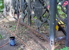 Все наваренные элементы, а также места сварки и вставленную секцию ограждения мы покрыли чёрной краской, защитив от ржавчины и повторного гниения