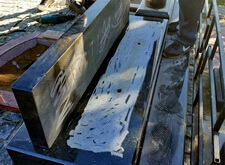 Начинается процесс монтажа. Доставляем памятники, крепим их, приклеиваем и насаживаем на штыри все конструктивные элементы надгробий.