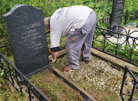 Уборка травы и мойка памятника